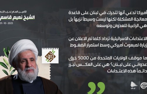 الشيخ نعيم قاسم :أمريكا ليست وسطا نزيها في لبنان بل هي راعية العدوان..