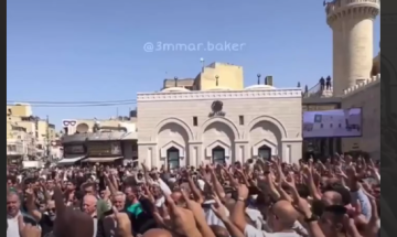 :شاهد خرجت مظاهرة أمس أمام الجامع الأموي بدمشق في سوريا.وهتف المتظاهرون "سوريا كلها حماس".