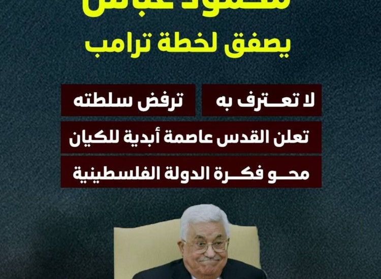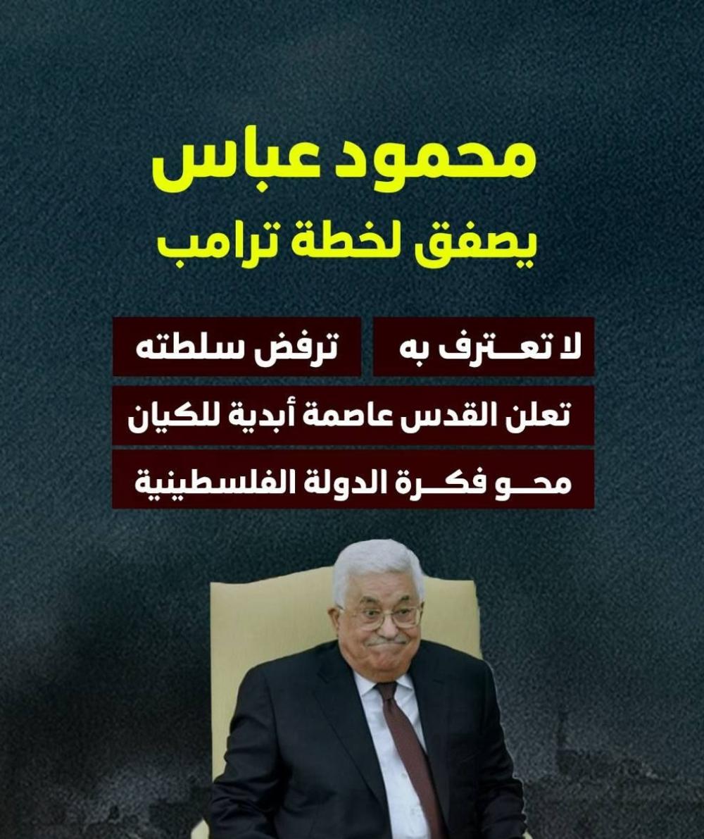 محمود عباس يصفق لخطة ترامب التي لا تعترف به أصلا، ولا بسلطته، ولا حتى بوجود دولة فلسطينية في الضفة الغربية، ويبارك خطة تجعل القدس عاصمة أبدية للكيان