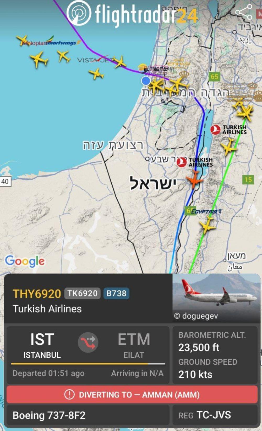 هبطت طائرة بوينغ 737 تابعة للخطوط الجوية التركية قبل قليل في مطار رامون قرب إيلات لنقل عشرات النشطاء المؤيدين للفلسطينيين من أسطول "الصمود" الذين اعتُقلوا في البحر وسيتم ترحيلهم من إسرائيل إلى تركيا.لم تُنقل الرحلة إلى عمّان، بسبب خلل في التطبيق