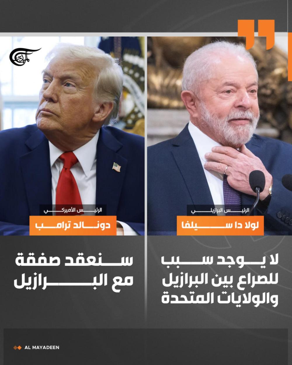 من جانبه، شدد الرئيس البرازيلي لولا دا سيلفا على أنه "لا يوجد سبب للصراع بين البرازيل والولايات المتحدة".