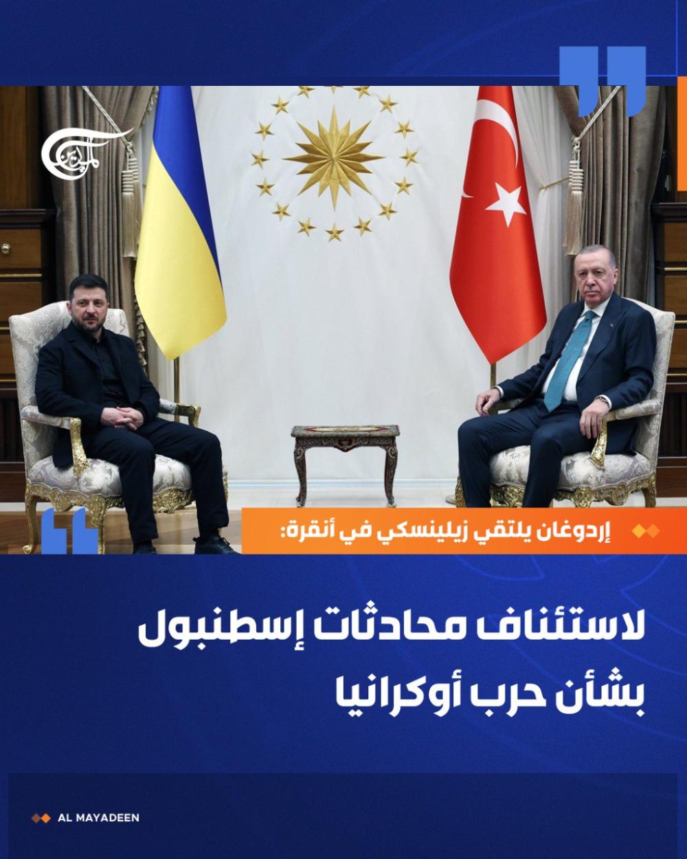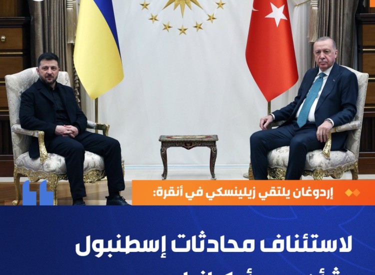 دعا الرئيس التركي، رجب طيب إردوغان، إلى المحادثات الروسية الأوكرانية في إسطنبول، وذلك في إثر لقائه، نظيره الأوكراني، فولوديمير زيلنسكي، في أنقرة، بحسب ما أفادت به وكالة "الأناضول".