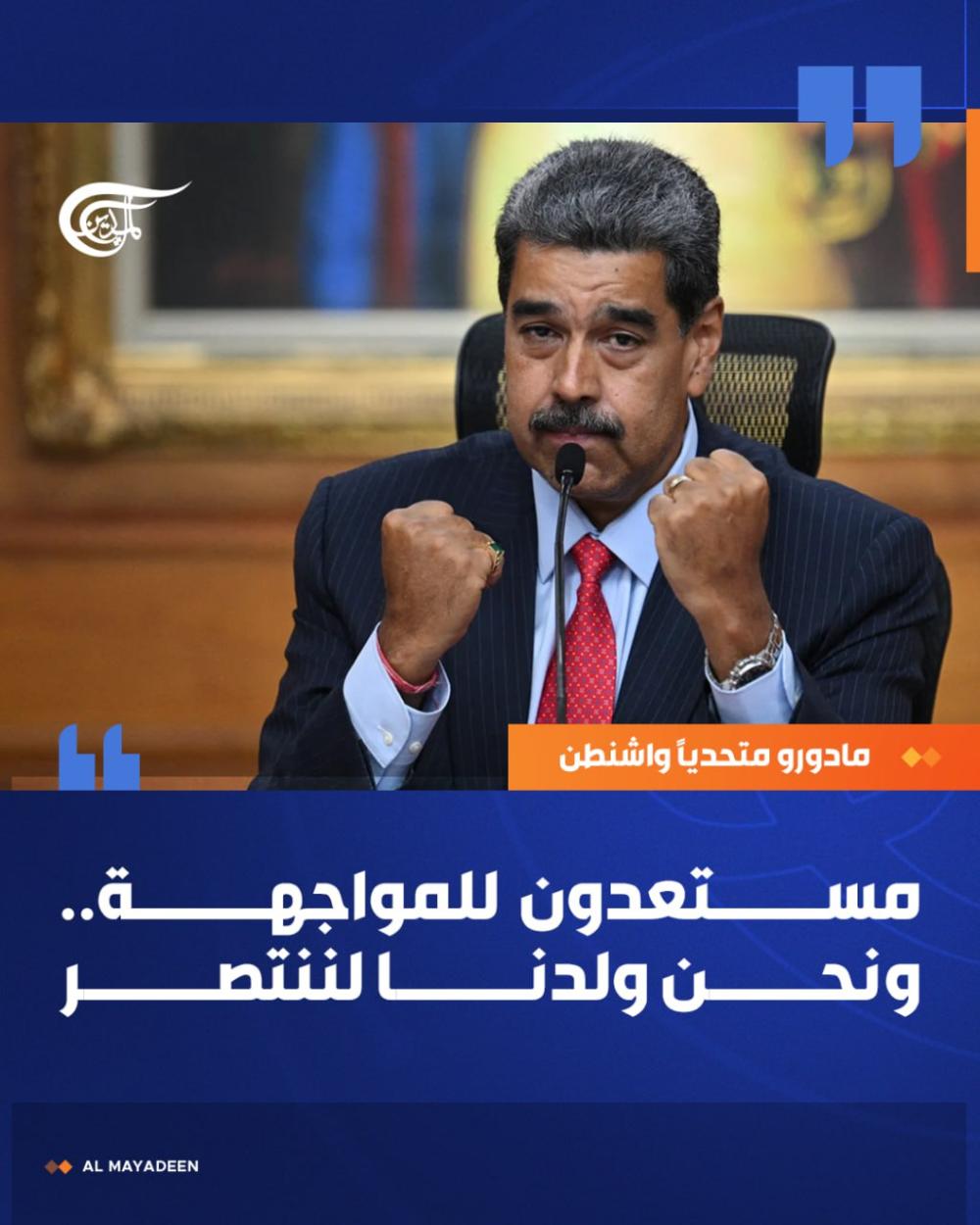 ولفت مادورو إلى أنّ استقلال الجمهورية "يترسّخ في شعب متمكّن وواعٍ ومنظّم"، متسائلاً: "هل تعتقدون أنّ هذا الشعب يمكن أن تستعبده الإمبراطورية الأميركية؟".