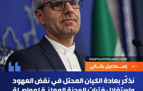 إسماعيل بقائي:نذكر بعادة الكيان المحتل بنقض العهود