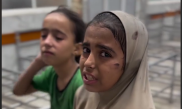 أطفال أصيبوا بقصف طيران الاحتلال منزلًا لعائلة شعت في شارع عايدية، بمخيم الشاطئ غرب مدينة غزة.