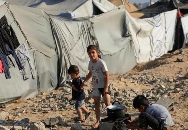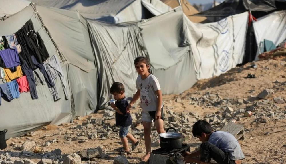 أطفالٌ مُهجَّرون في وسط قطاع غزّة، الشهر الماضي. سيأتي وقتٌ ما — كما يرى المتفائلون — تصل فيه الحقيقة إلى قلب الإسرائيليين وتجرحه.